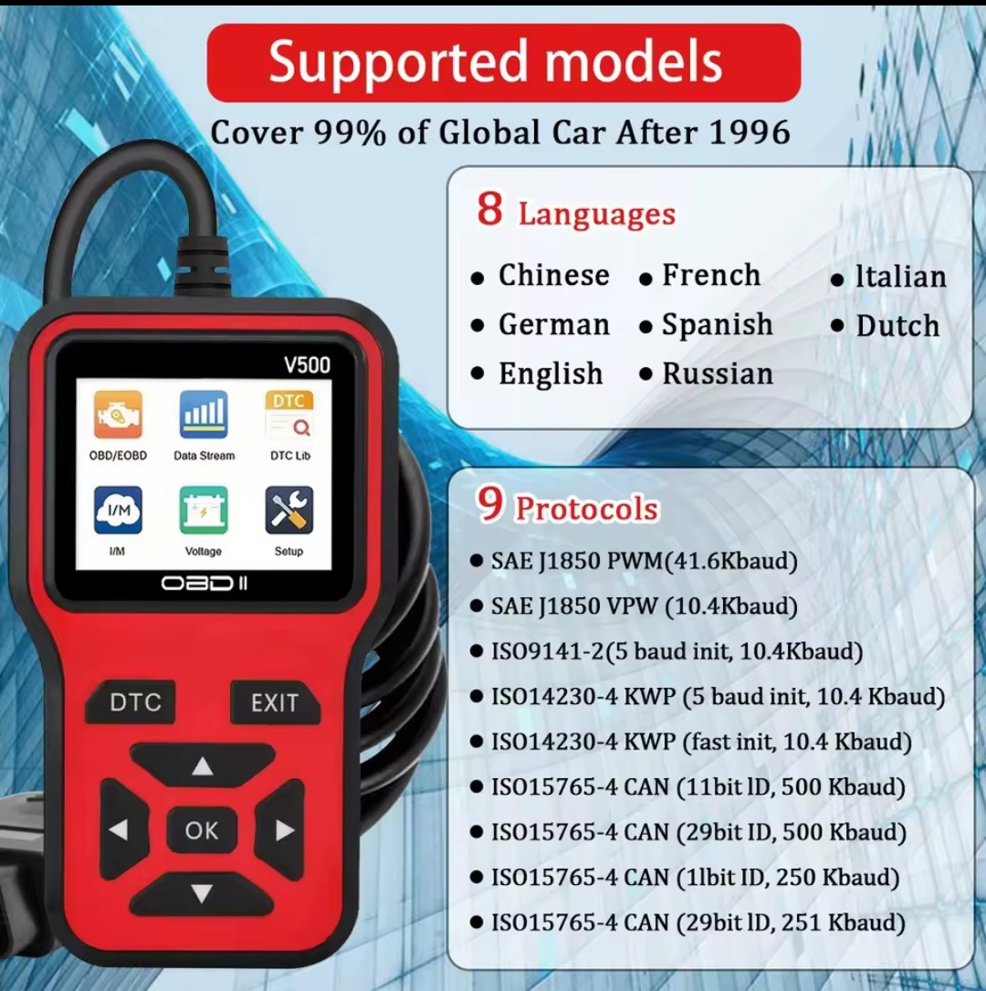 إذا كنت تبحث عن أدق وأشمل أداة لتشخيص أعطال سيارتك، فقد وجدت ضالتك. جهاز V500 ليس مجرد قارئ لأعطال المحرك، بل هو نظام تشخيص متكامل يمنحك رؤية كاملة عن صحة سيارتك.
