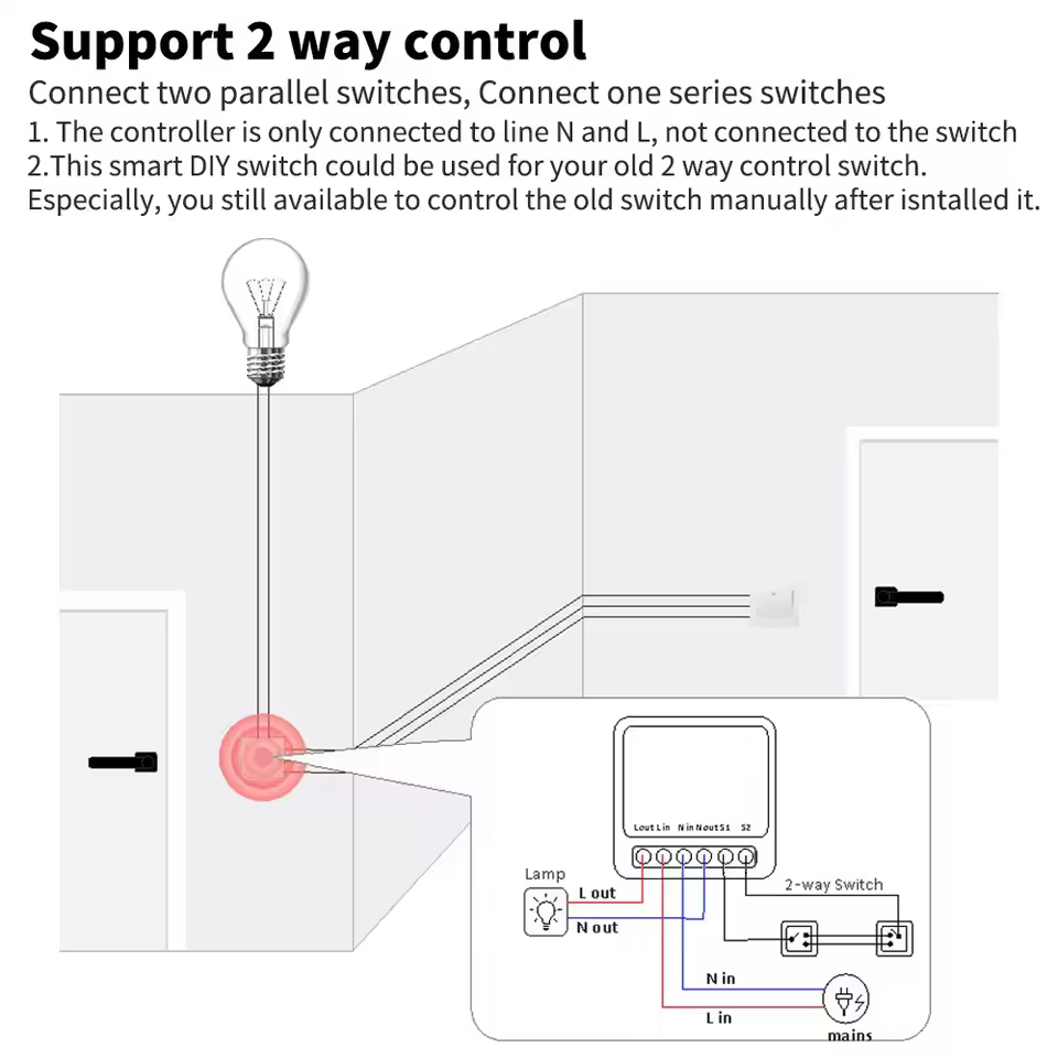 يدعم ✅2-Way Switch (مفتاحين يتحكمون في نفس الضوء)