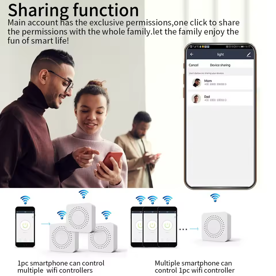 يدعم التحكم عبر WiFi، ويعمل مع Alexa – Google Assistant – Smart Life – Tuya، كما يدعم التشغيل الثنائي الاتجاه (2-Way) لتركيب مرن وسهل في أي غرفة